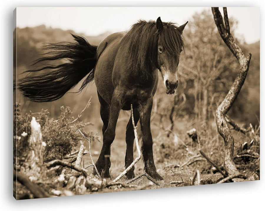 deyoli niedliches Pony Format: 80x60 Effekt: Sepia als Leinwand, Motiv fertig gerahmt auf Echtholzra