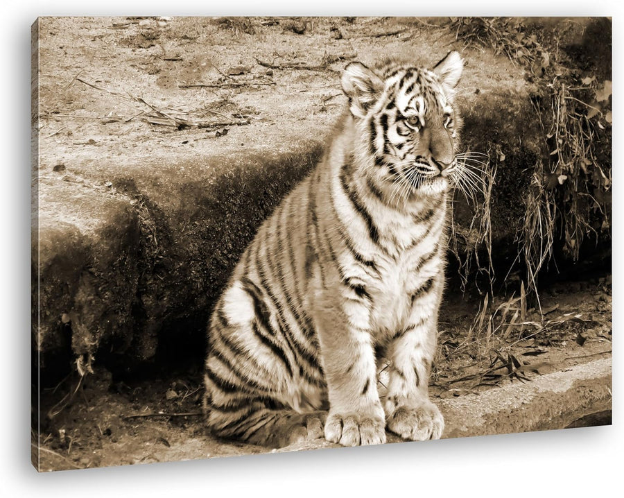 deyoli niedliches Tiger Jungtier Format: 80x60 Effekt: Sepia als Leinwandbild, Motiv fertig gerahmt