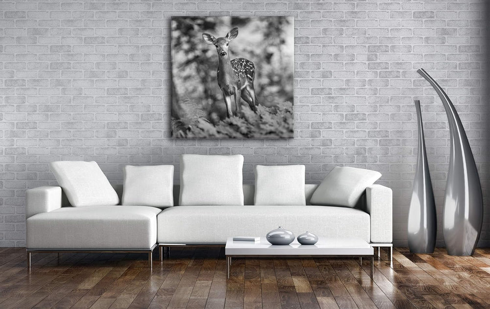 deyoli niedliches junges Rehkitz Format: 60x60 Effekt: Schwarz&Weiss als Leinwandbild, Motiv auf Ech