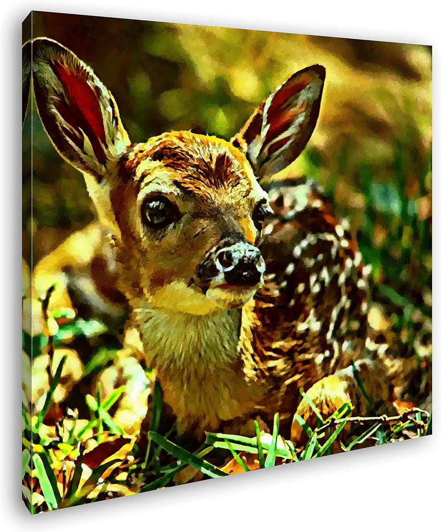 deyoli Niedliches Rehkitz im Wald Format: 60x60 Effekt: Zeichnung als Leinwandbild, Motiv auf Echtho