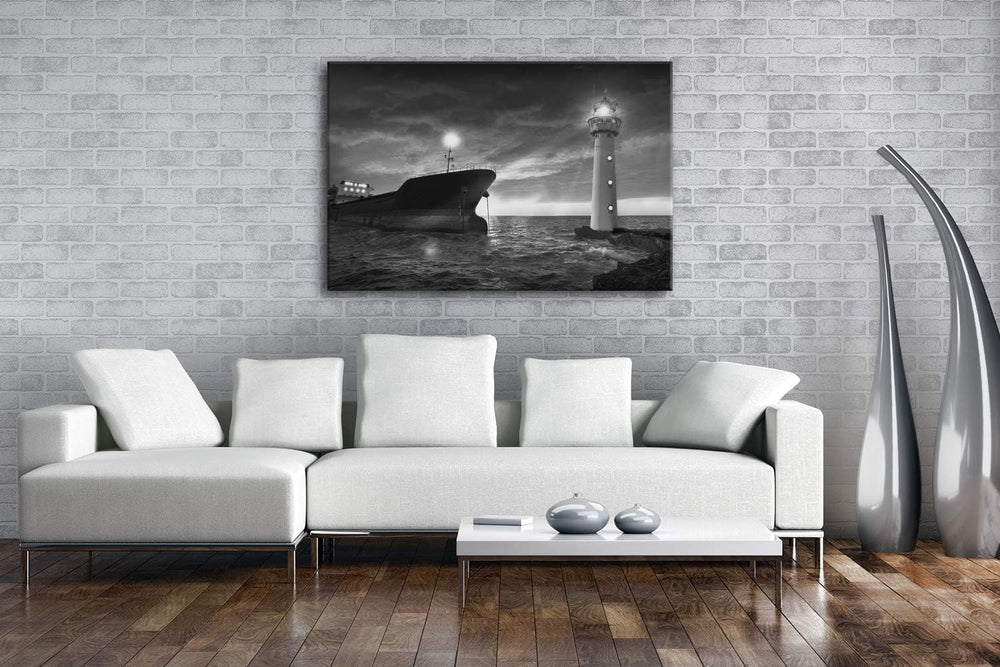 deyoli Orangener Himmel am Hafen Format: 60x40 Effekt: Schwarz&Weiss als Leinwand, Motiv fertig gera