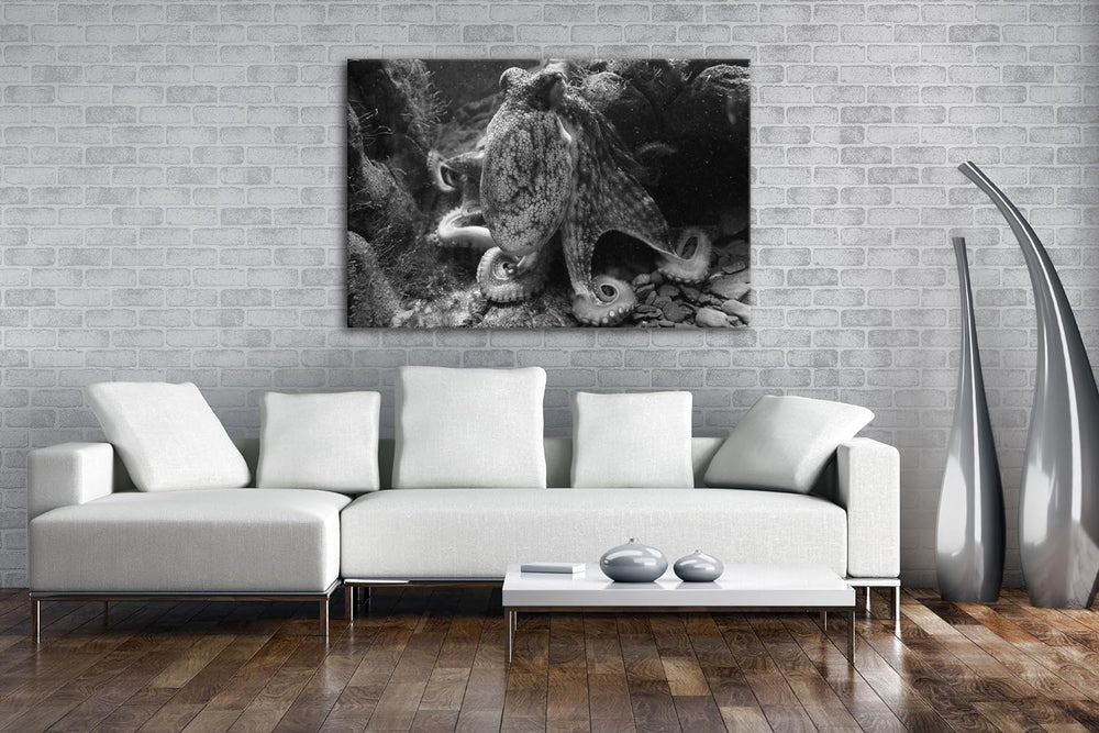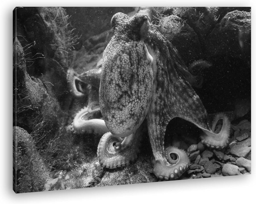 deyoli Oktopus am Korallenriff Effekt: Schwarz/Weiss Format: 80x60 als Leinwandbild, Motiv fertig ge