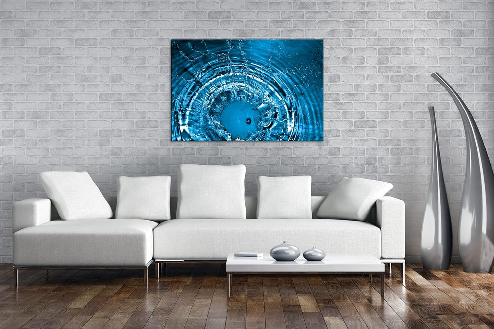 deyoli Orange fällt ins Wasser Format 80x60 Effekt: Monocrome Blau als Leinwandbild, Motiv fertig ge