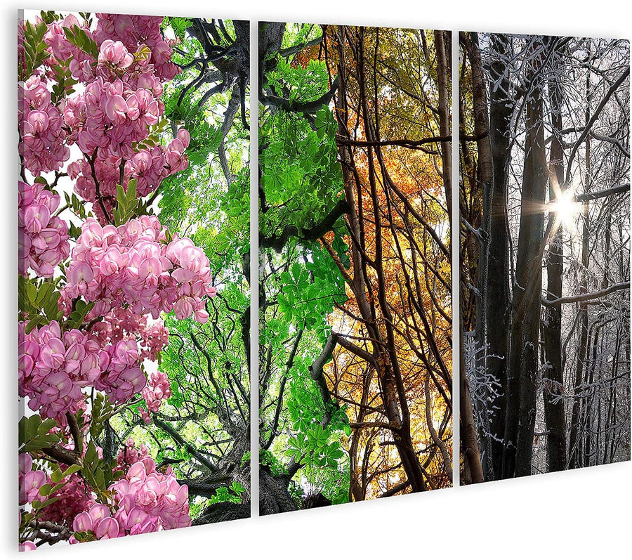 islandburner Bild auf Leinwand Vier Jahreszeiten Bilder Wandbilder Poster Leinwand 130x80cm - 3 Teil