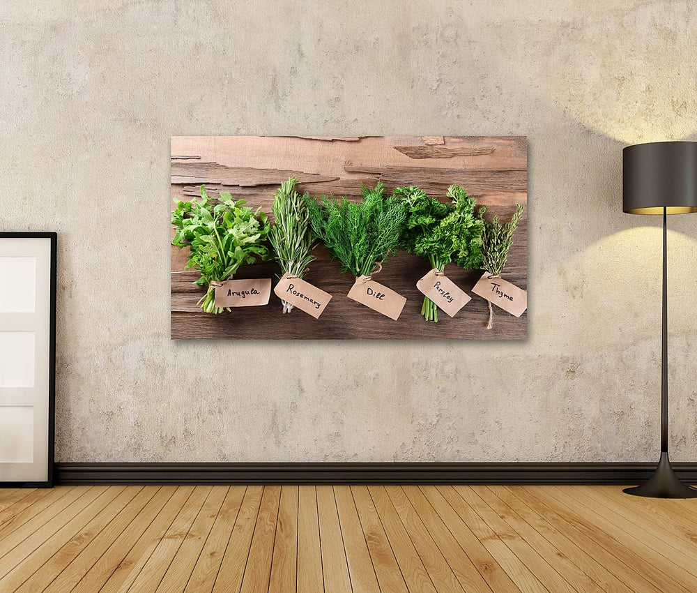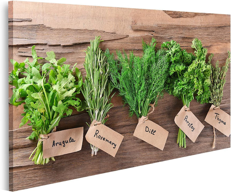 islandburner Bild auf Leinwand Verschiedene Frische Kräuter Auf Holzuntergrund Wandbild Poster Kunst