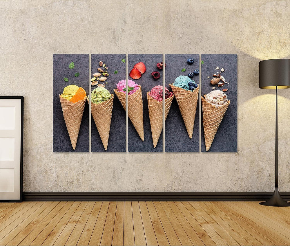 islandburner Bild auf Leinwand Verschiedene Eiscremes Geschmack Heidelbeere Erdbeere Eisdiele Bilder