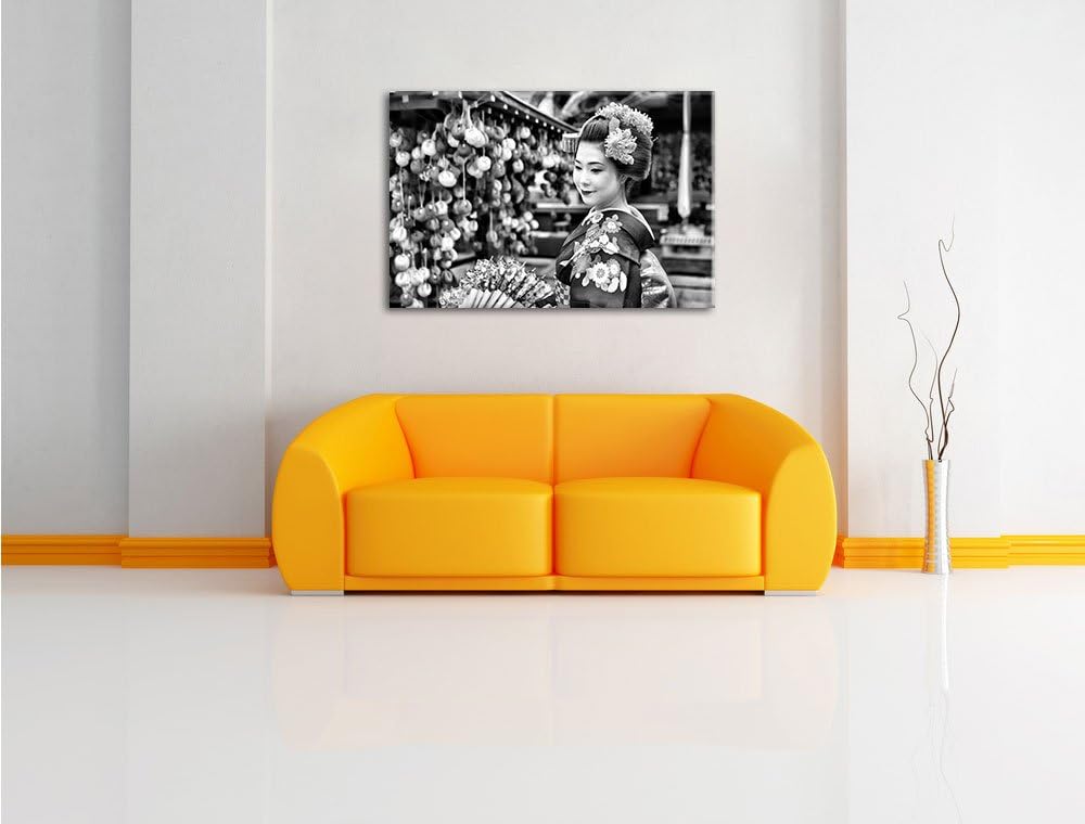 Pixxprint Anmutige Geisha mit Fächer als Leinwandbild/Grösse: 100x70 cm/Wandbild/Kunstdruck/fertig b
