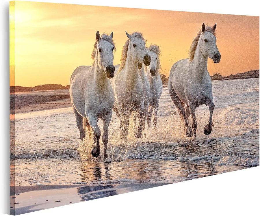 islandburner Bild auf Leinwand Weisse Pferde Camargue Frankreich Galoppierendes Wasser Über Dem Meer