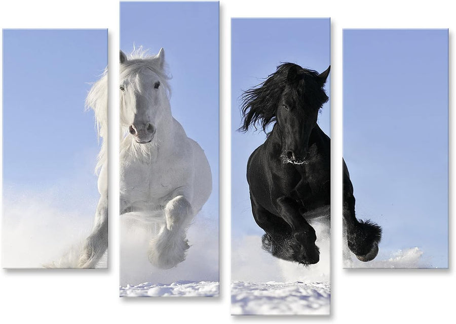 islandburner Bild auf Leinwand Weisses Und Schwarzes Pferd Im Schnee Bilder Wandbilder Poster Leinwa