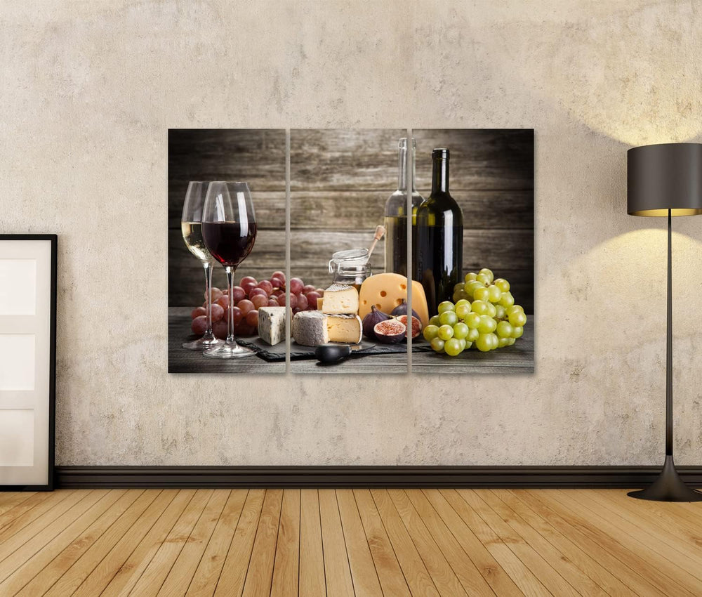 islandburner Bild auf Leinwand Wein Und Käse Stillleben Bilder Wandbilder Poster Leinwand 130x80cm -