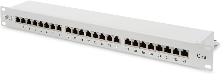 DIGITUS Patchpanel - 19-Zoll - Cat-5e - 24-Port RJ45 - Geschirmt - LSA Patch-Feld - Rack-Montage 1HE