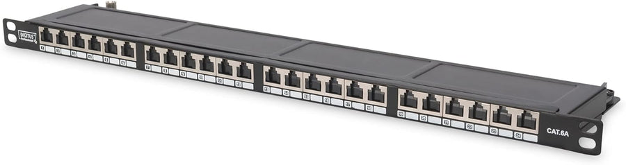 DIGITUS Patchpanel - 19-Zoll - Cat-6A - 24-Port RJ45 - Geschirmt - LSA Patch-Feld - Rack-Montage 0.5