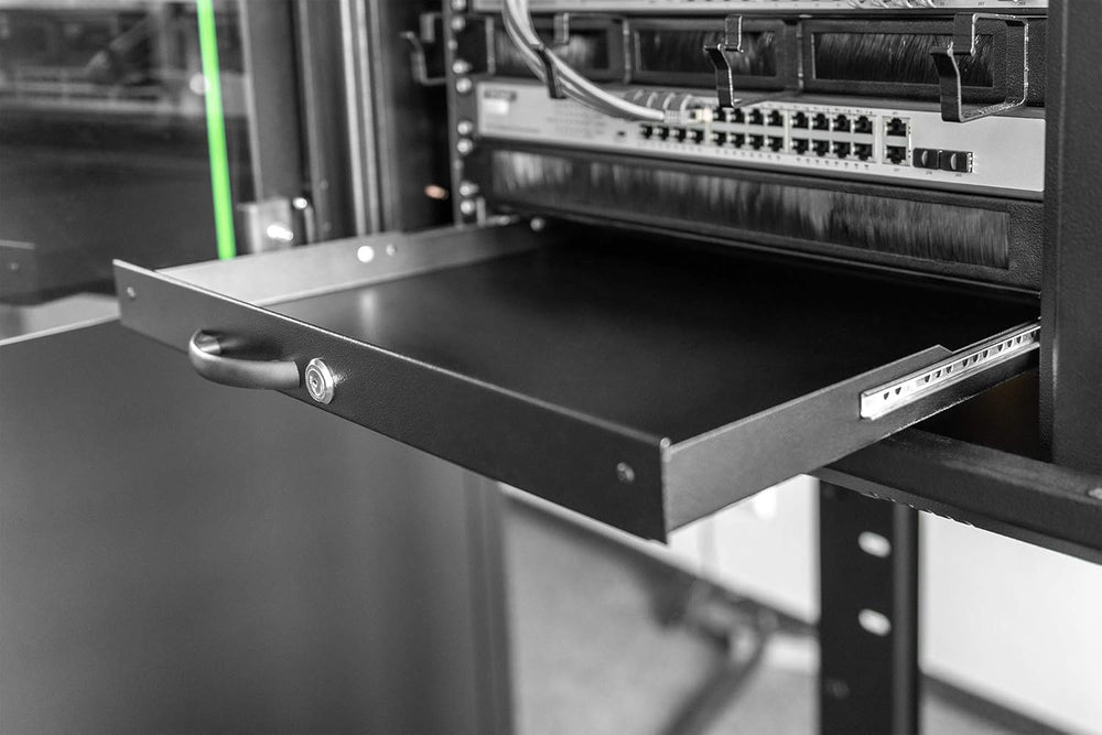 DIGITUS Professional 1HE Tastatureinschub, 19" (485mm), abschliessbar, Schwarz Schwarz 1 HE Single,