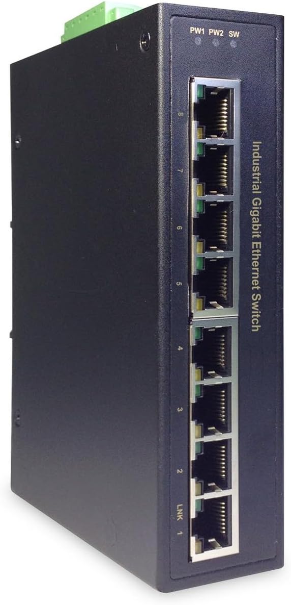 DIGITUS Netzwerk-Switch 8-Port - Hutschiene oder Wand-Montage - Gigabit Ethernet RJ45 Buchsen - DIN-