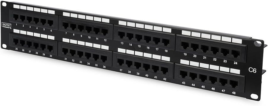 DIGITUS Patchpanel - 19-Zoll - Cat-6 - 48-Port RJ45 - Ungeschirmt - LSA Patch-Feld - Rack-Montage 2H