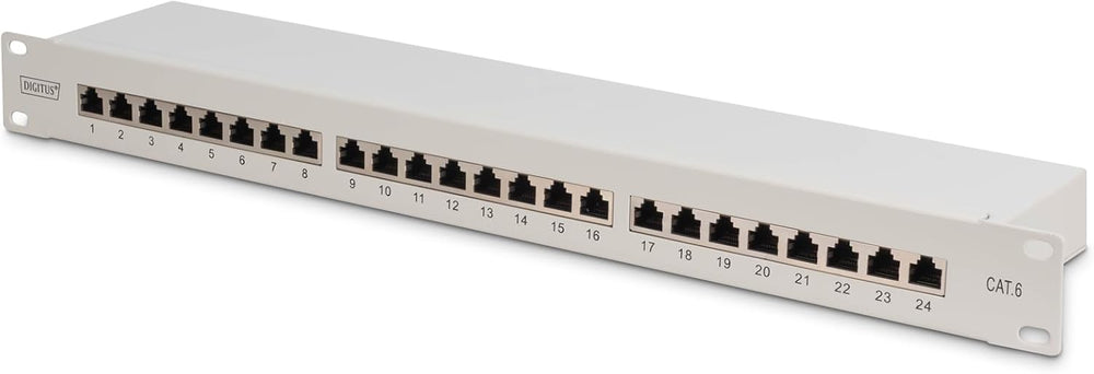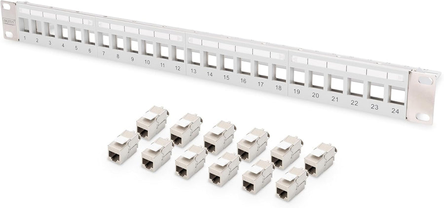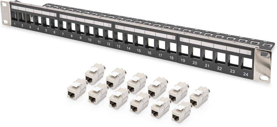 DIGITUS Patchpanel – Modular – 19-Zoll – 24-Port – Geschirmt – Rack-Montage 1HE – Grau – Mit 12x Cat