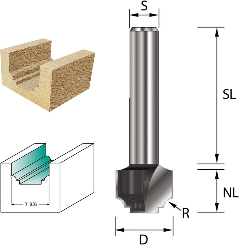 ENT 13185 Nutenprofilfräser HW, Schaft (S) 6 mm, Durchmesser (D) 19,05 mm, NL 11,11 mm, R 3,2 mm, SL