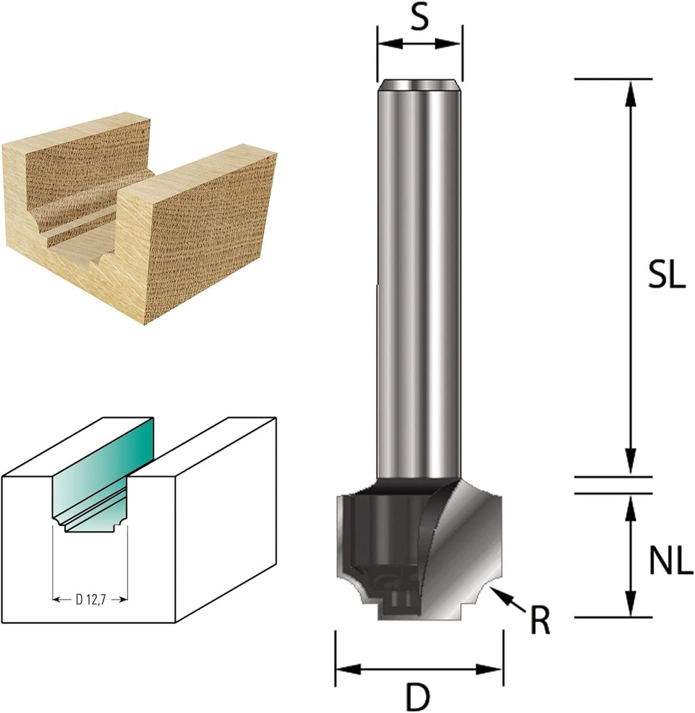 ENT 13183 Nutenprofilfräser HW, Schaft (S) 12 mm, Durchmesser (D) 12,7 mm, NL 9,5 mm, R 2 mm, SL 40