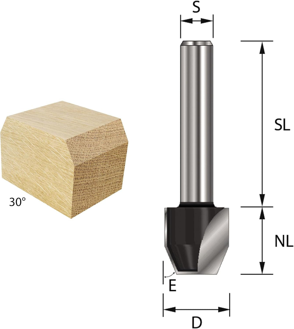 ENT 13744 Fasefräser HW, Schaft (S) 8 mm, Durchmesser (D) 23 mm, NL 9,5 mm, E 30°, SL 32 mm, mit Kug