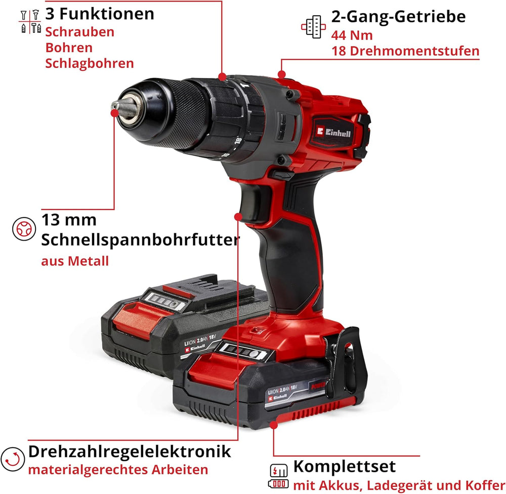 Einhell Akku-Schlagbohrschrauber TE-CD 18/2 Li-i +64 (2x2,0Ah) Power X-Change (Li-Ion, 18 V, 44 Nm,