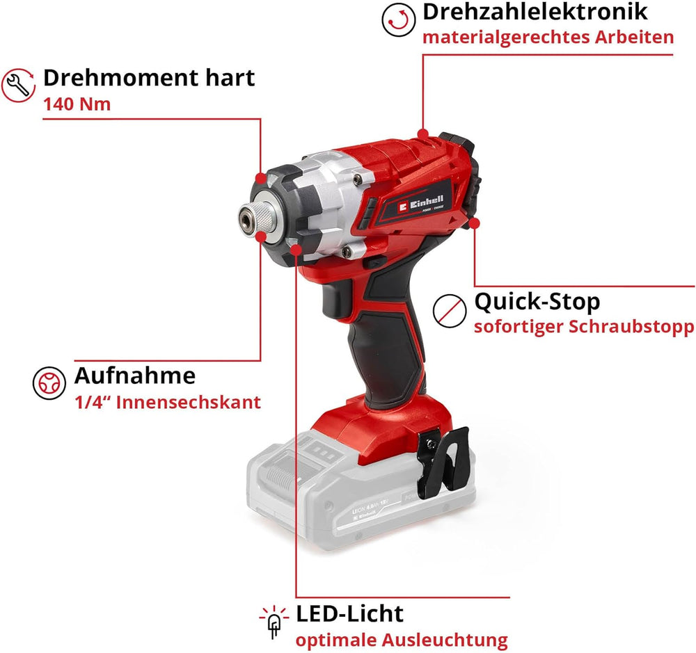 Einhell Akku-Schlagschrauber TE-CI 18/1 Li-Solo Power X-Change (Li-Ion, 18V, 0-2300 min-1, max. Dreh