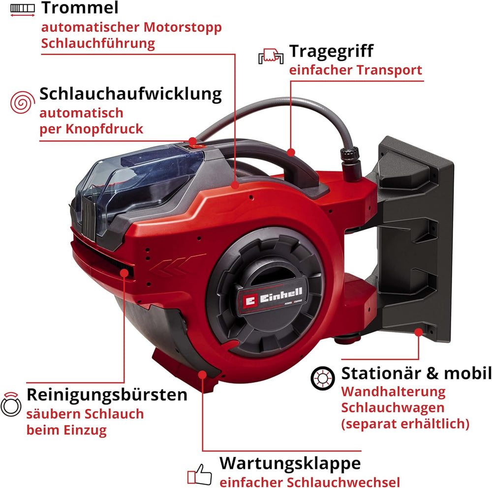 Einhell Akku-Schlauchtrommel GE-HR 18/30-1 Li-Solo Power X-Change (18 V, automatische Schlauchaufwic