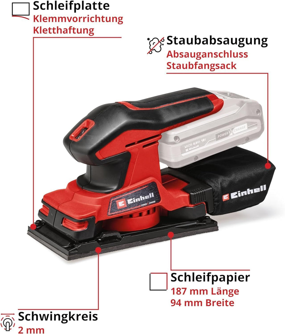 Einhell Akku-Schwingschleifer TC-OS 18/187 Li Solo Power X-Change (Lithium-Ionen, Micro-Klett, Griff