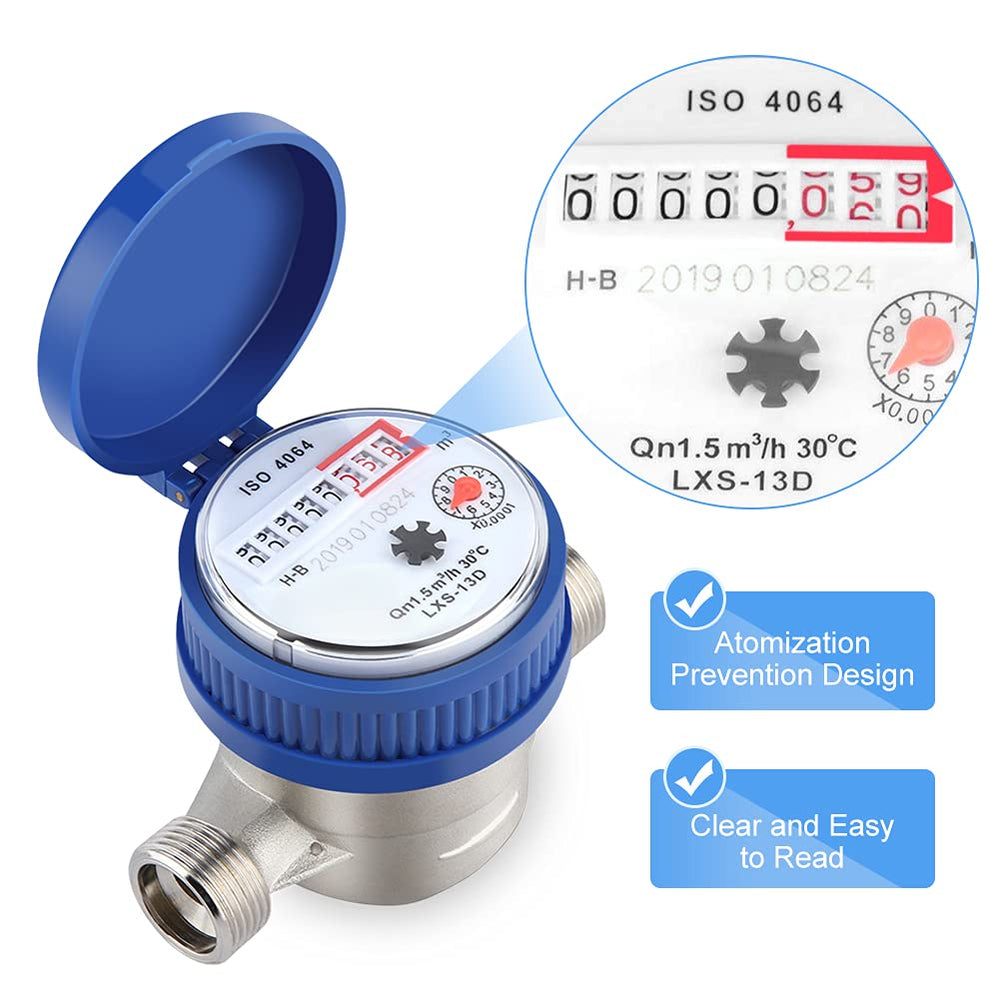 Wasserzähler Garten 1/2 Zoll, Geeicht Kalt Wasseruhr, Zapfhahnzähler Mit Montagezubehör Und Schutzab