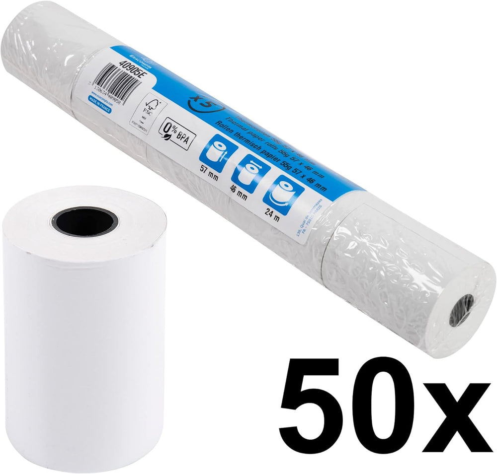 Exacompta 40905E 50er Pack Thermopapierrollen 1-lagig, Breite: 57mm, Länge 24m, Durchmesser Kern: 12