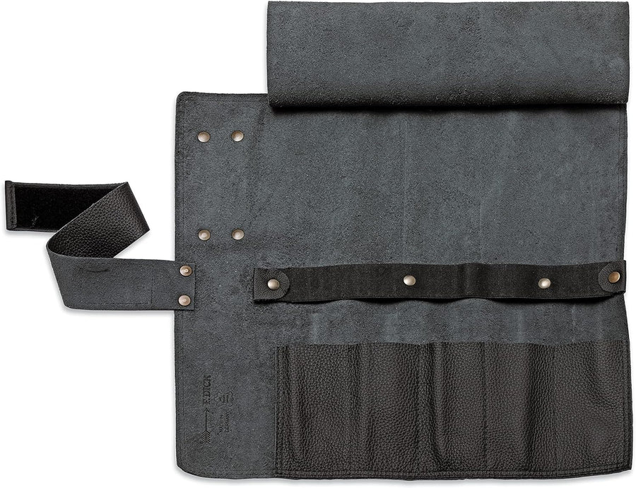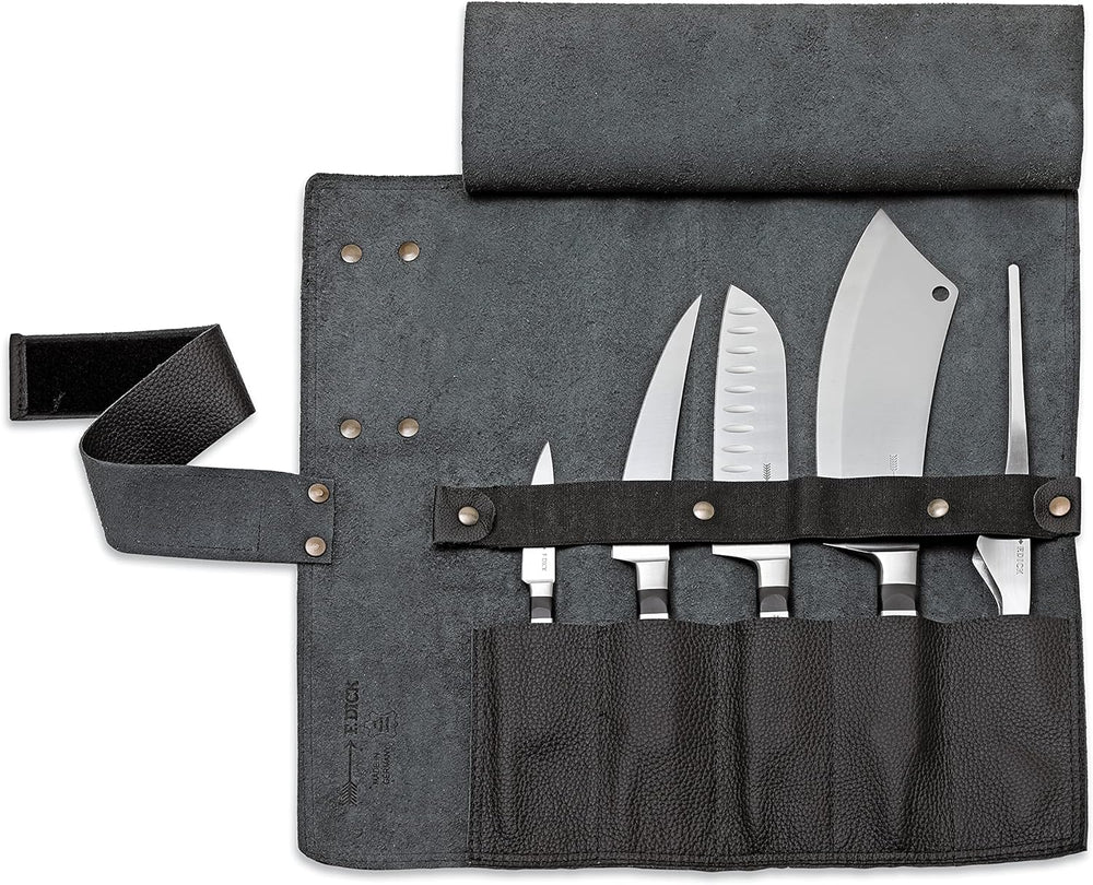 F.DICK Leder-Rolltasche 1905 (5-teilig, schwarz, Inhalt: Officemesser, Zerlegemesser, Santoku, Kochm