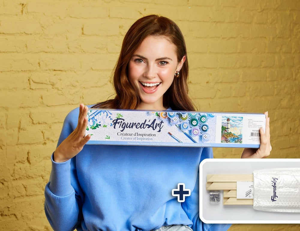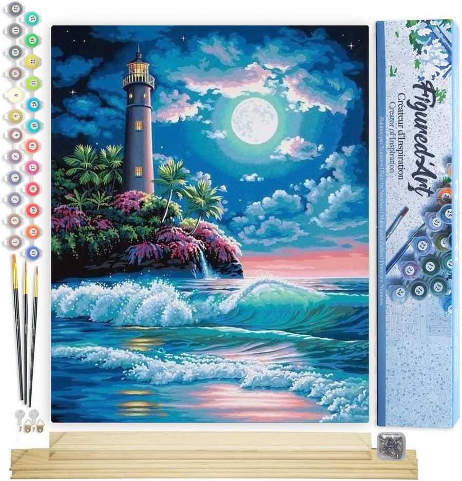 Figured'Art Malen Nach Zahlen Erwachsene Mit Rahmen Leuchtturm unter dem Vollmond - Paint by Numbers