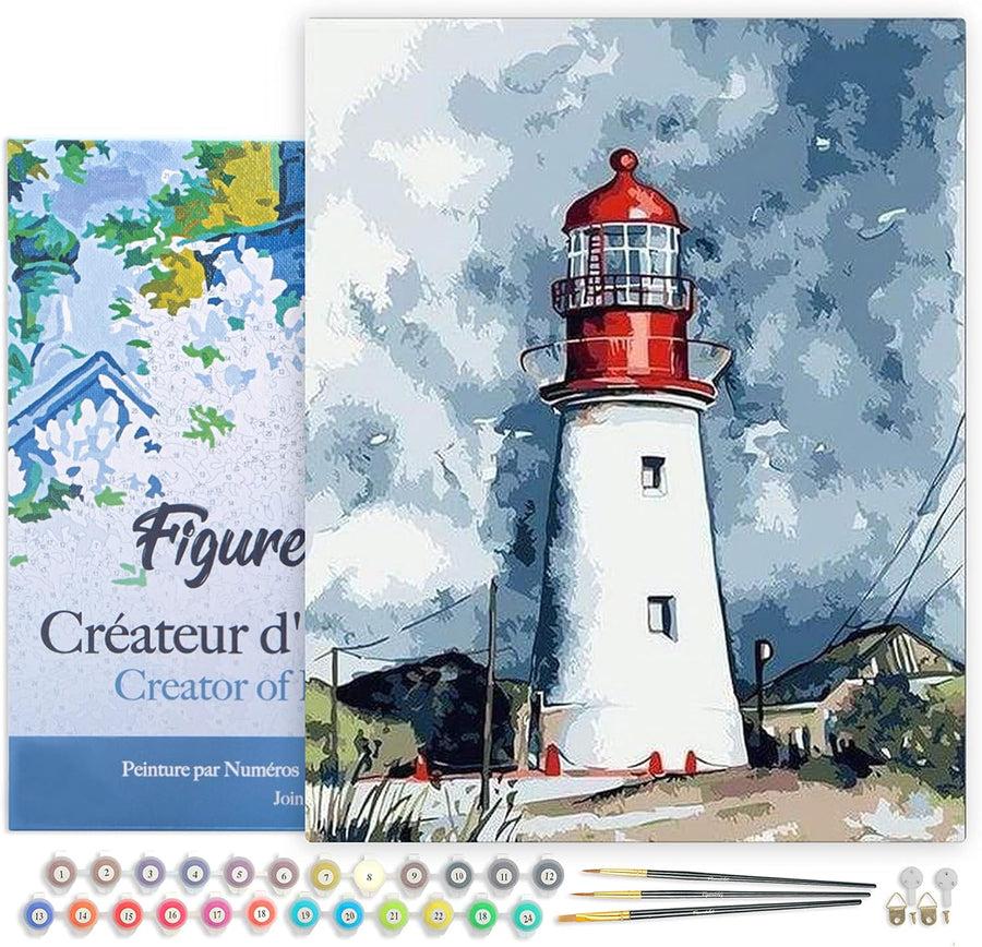 Figured'Art Malen Nach Zahlen Erwachsene Mit Rahmen Leuchtturm unter bewölktem Himmel - Paint by Num