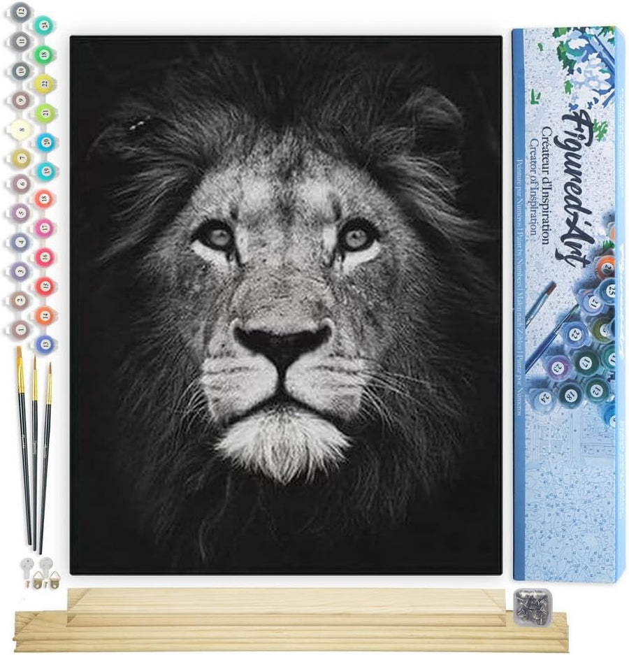 Figured'Art Malen Nach Zahlen Erwachsene Mit Rahmen Löwenkopf in schwarzweiss - Paint by Numbers Bas