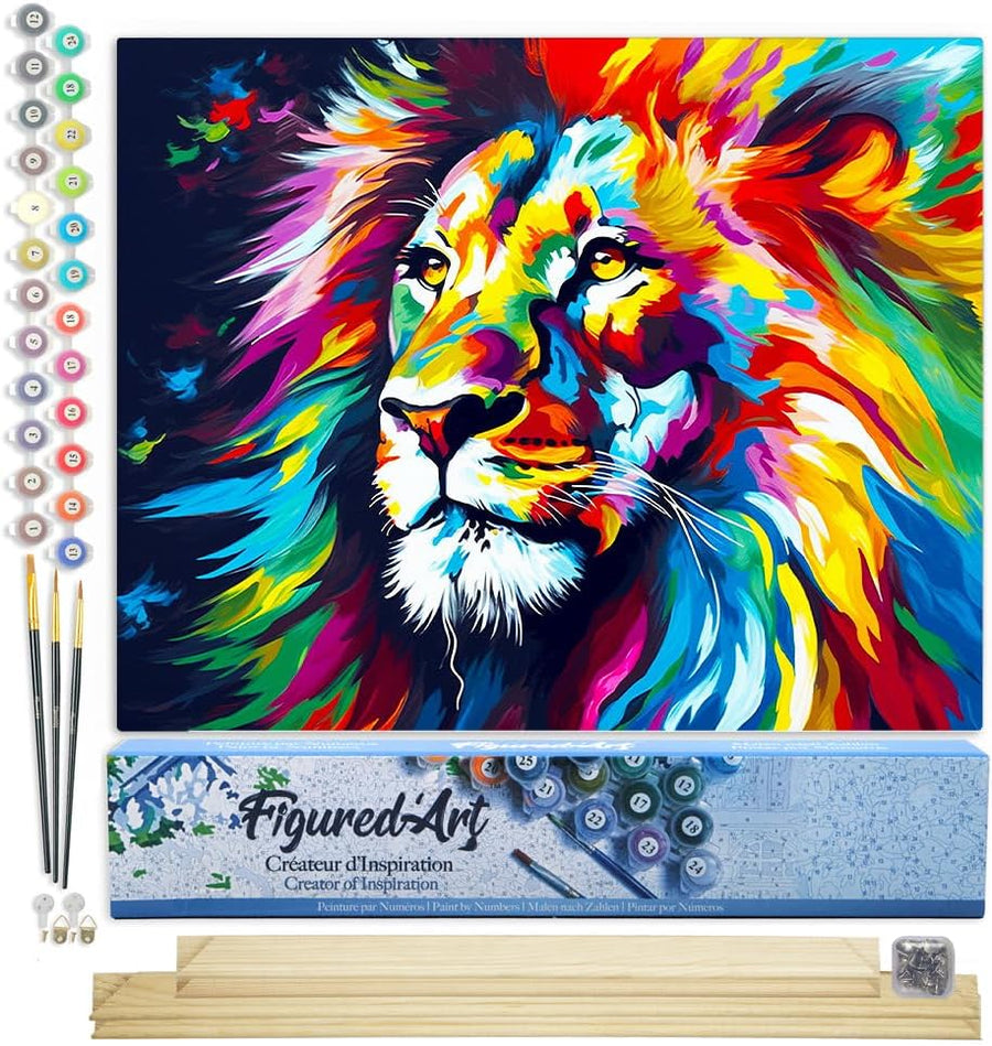 Figured'Art Malen Nach Zahlen Erwachsene Mit Rahmen Löwe Farbenfroh Abstrakt - Paint by Numbers Bast