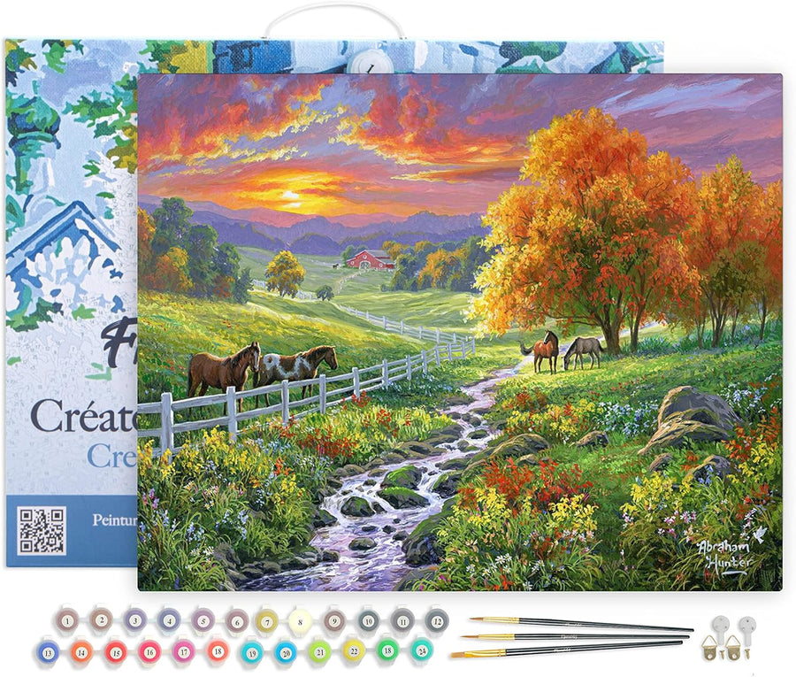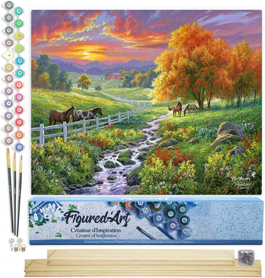 Figured'Art Malen Nach Zahlen Erwachsene Mit Rahmen Landschaftlicher Sonnenuntergang und Pferde - Pa