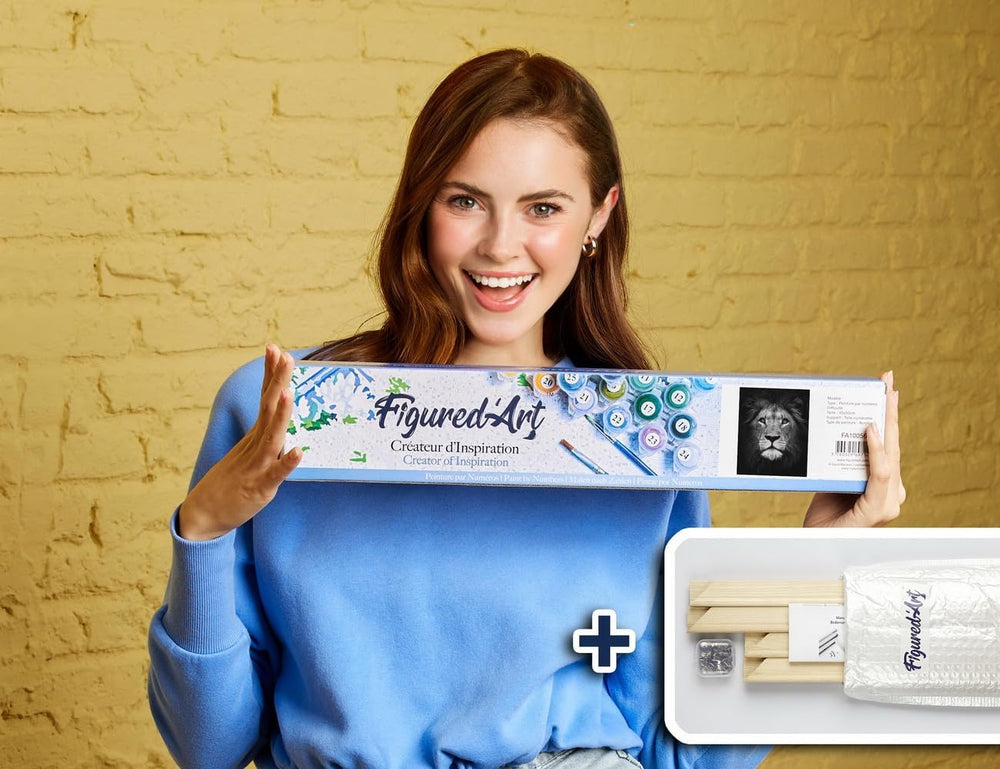 Figured'Art Malen Nach Zahlen Erwachsene Mit Rahmen Löwe und sein Junges - Paint by Numbers Basteln