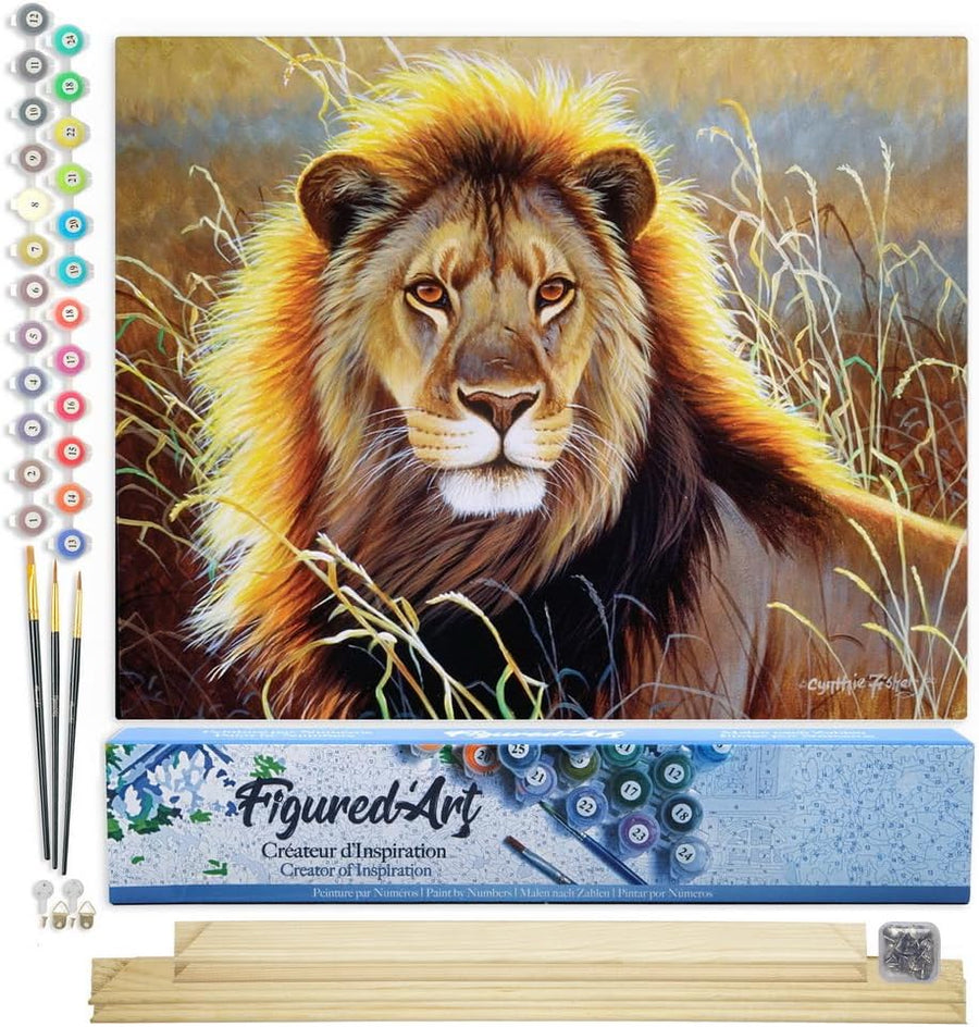 Figured'Art Malen Nach Zahlen Erwachsene Mit Rahmen Löwe in der Savanne - Paint by Numbers Basteln D