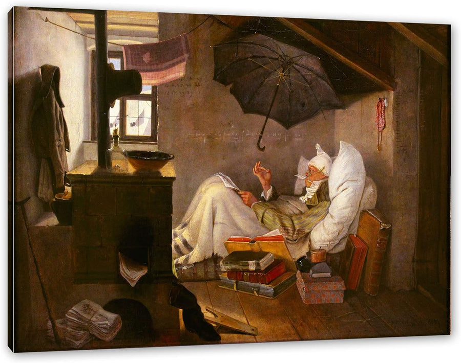 Generisch Carl Spitzweg - Der arme Poet als Leinwandbild / Grösse: 100x70 cm / Wandbild / Kunstdruck