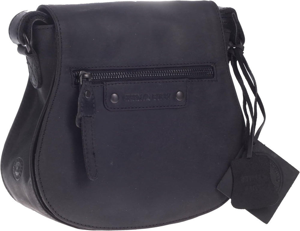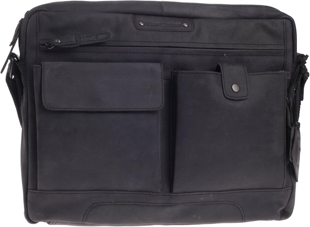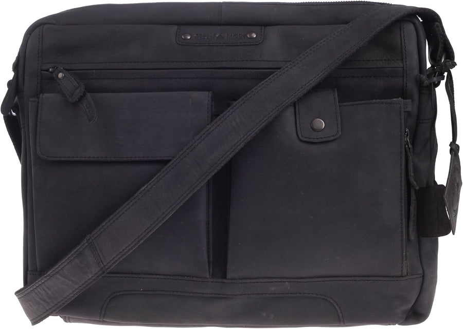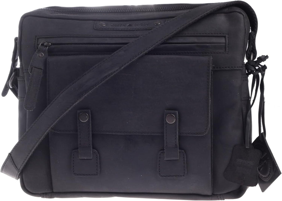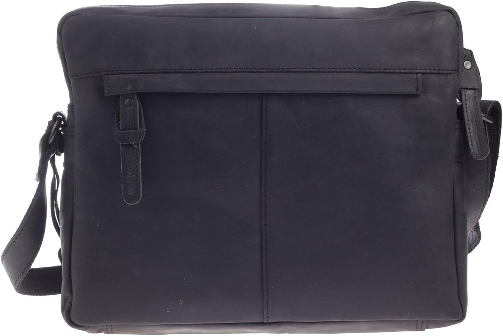 Greenburry Vintage Revival Leder Messenger Schultertasche Umhängetasche 1963-22 Schwarz, Schwarz