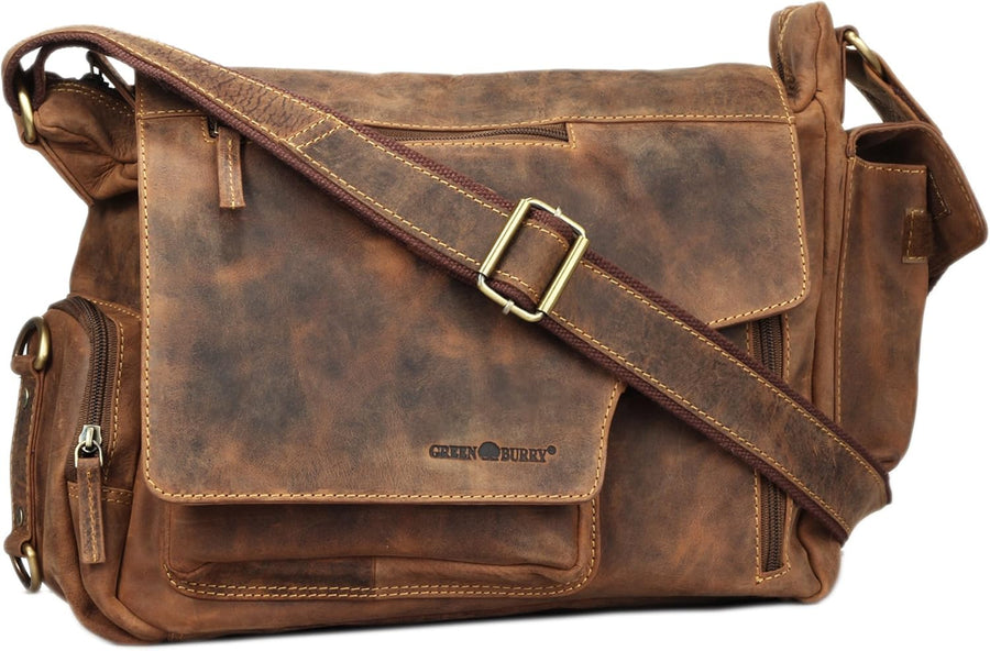 Greenburry Vintage Leder Umhängetasche Crossbag Messenger Schultertasche Flapbag Shoulderbag BV-1930