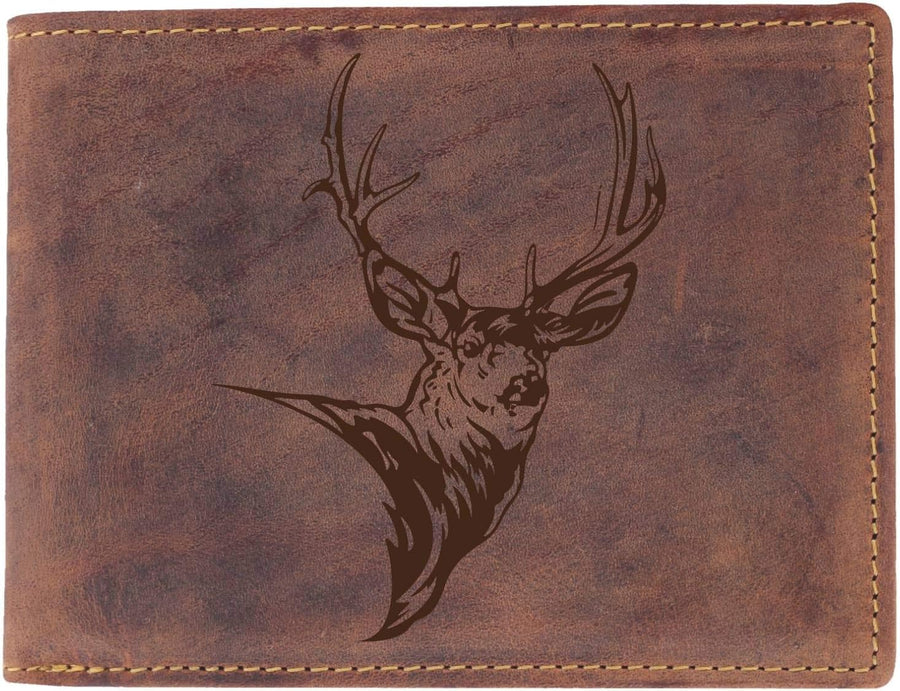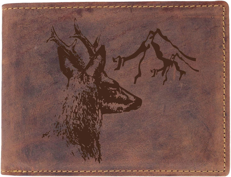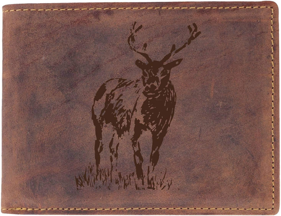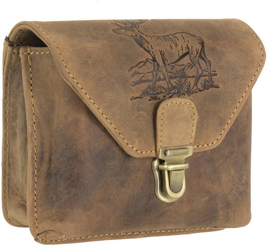 Greenburry Vintage Leder-Geldbeutel Geldbörse mit Hirsch Motiv - 12x10x3cm