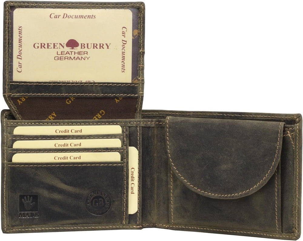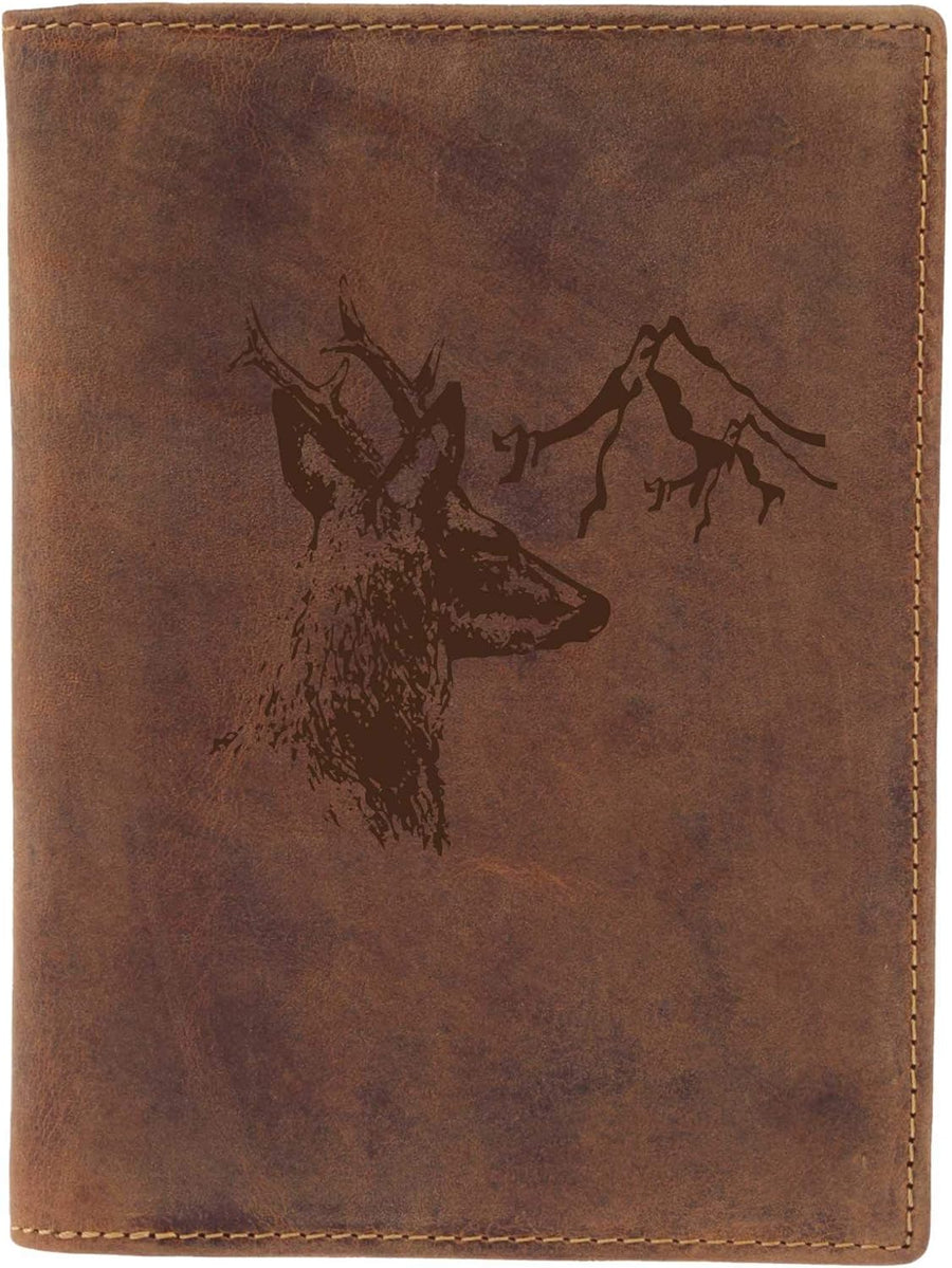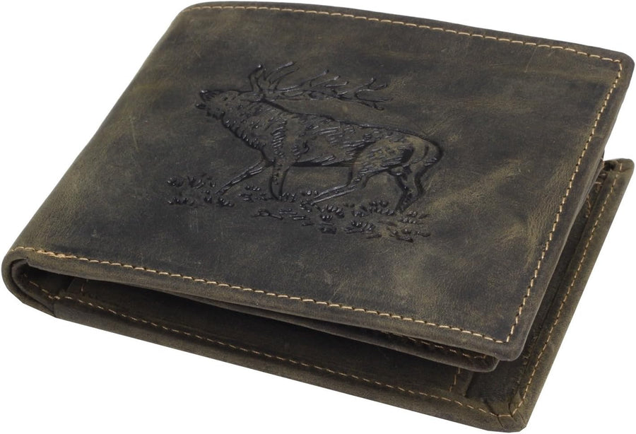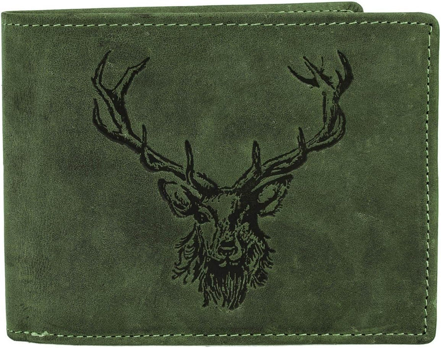 GREENBURRY Vintage Leder Geldbörse Portemonnaie Geldbeutel Royal Stag 1705-RS Hirsch Motiv, Farbe:Ol