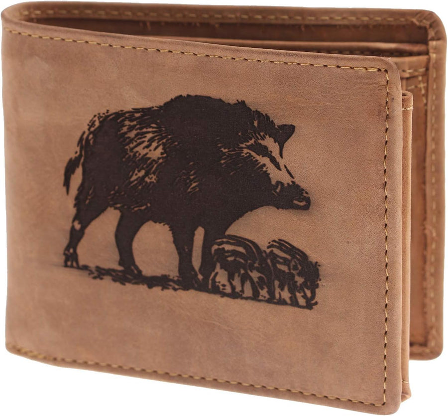 Greenburry Vintage Leder-Geldbeutel I Geldbörse mit Wildschwein Motiv I Leder-Portemonnaie für Jäger
