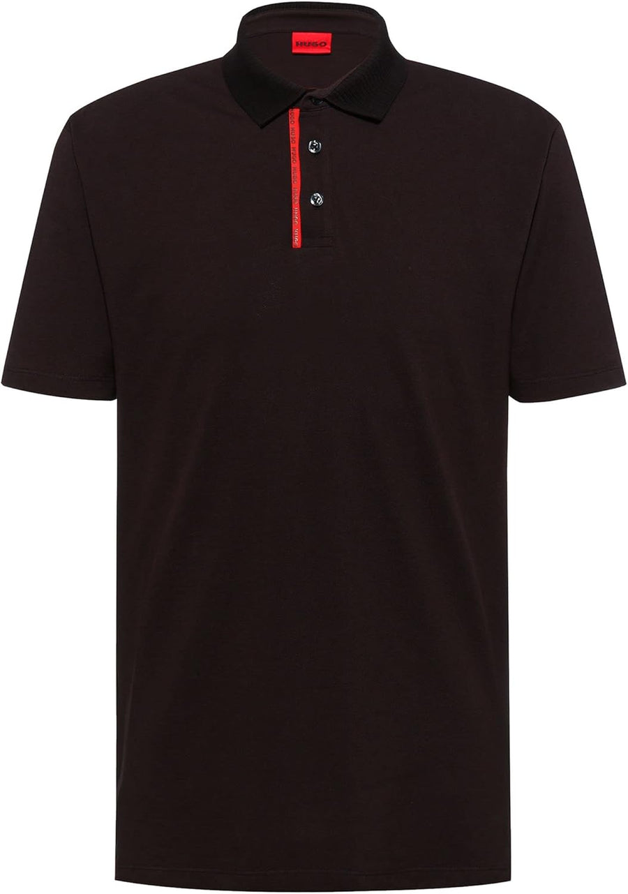 HUGO Herren Dichelangelo Poloshirt aus Baumwoll-Piqué mit rotem Logo-Tape Schwarz XL