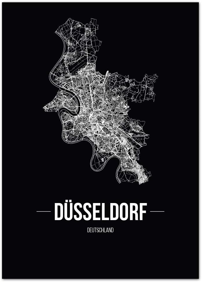 JUNIWORDS Stadtposter, Düsseldorf, Wähle eine Grösse, 60 x 90 cm, Poster, Schrift A, Schwarz 60 x 90