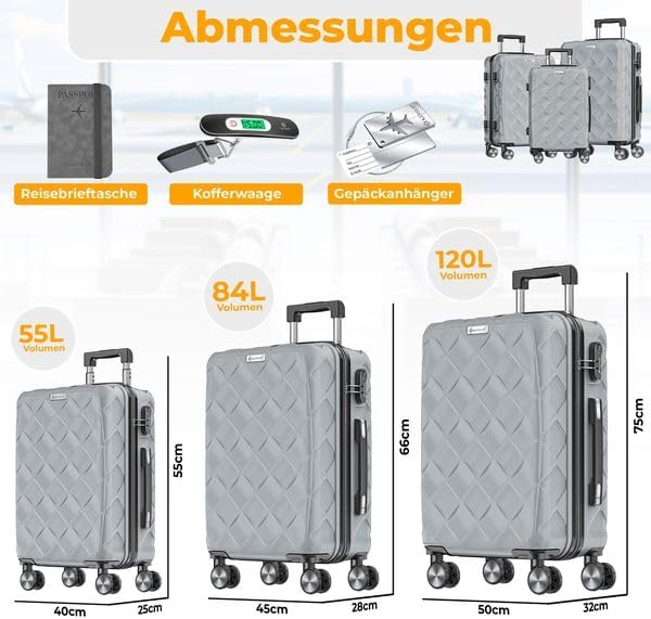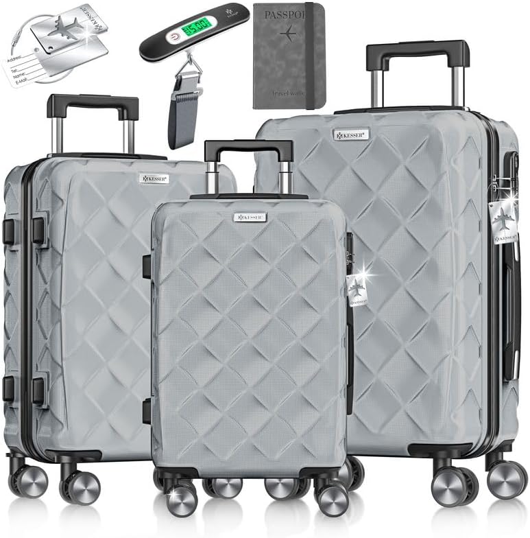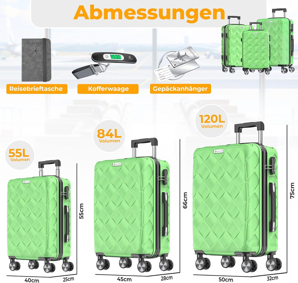 KESSER® Reisekoffer Set 3-teilig | Kofferset ABS Hartschalenkoffer mit Zahlenschloss, Kofferwaage &