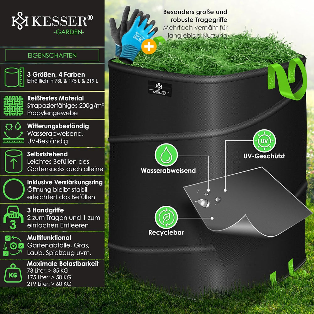 KESSER® Pop-Up-Gartensack 73L Laubsack Gartenabfallsack inkl. Handschuhe | Selbststehend mit Griffen