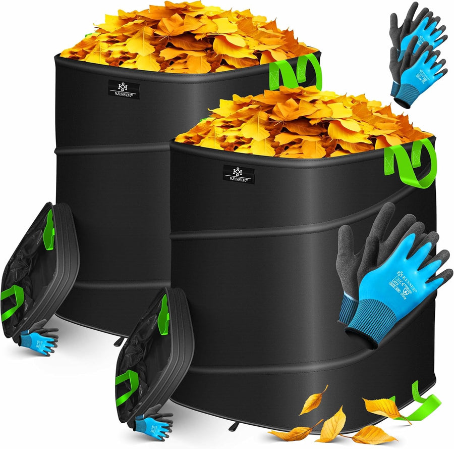 KESSER® Pop-Up-Gartensack 2x 73L Set Laubsack Gartenabfallsack inkl. Handschuhe | Selbststehend mit