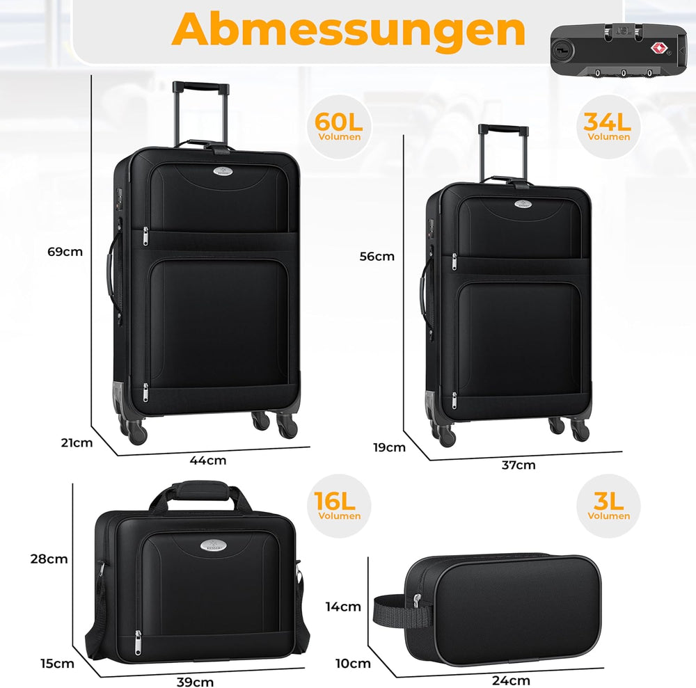 KESSER® Reisekoffer Set 4-teilig | Trolley Kofferset Stoffkoffer mit 3-Ziffern-TSA-Schloss, 360° Rol