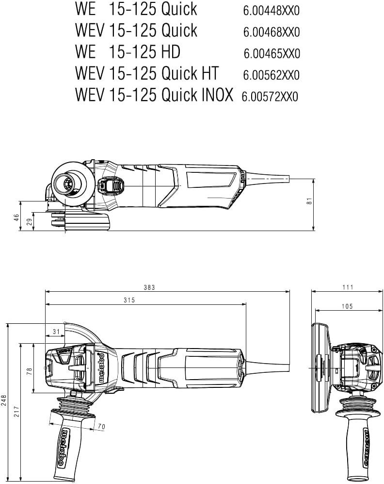 Metabo Winkelschleifer WEV 15-125 Quick (600468000) Karton; mit Drehzahlregelung, Schnellspannnmutte